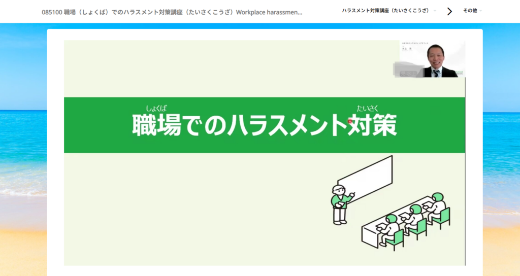 <08_講習(こうしゅう)、その他コンテンツ【Others】> ー 06 ビジネスルールとマナー Business Rules and Etiquettes ー 085100 職場(しょくば)でのハラスメント対策講座(たいさくこうざ)Workplace harassment prevention course を公開(こう... -